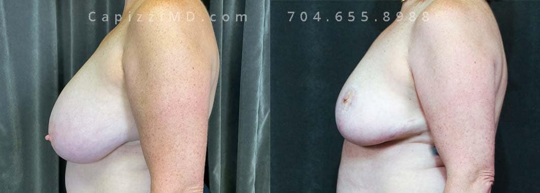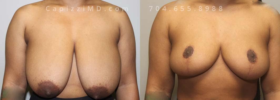 This patient had large breasts that were giving her daily pain in her neck and back. She wanted to realign her nipples, improve symmetry, and reduce the size of her breasts.