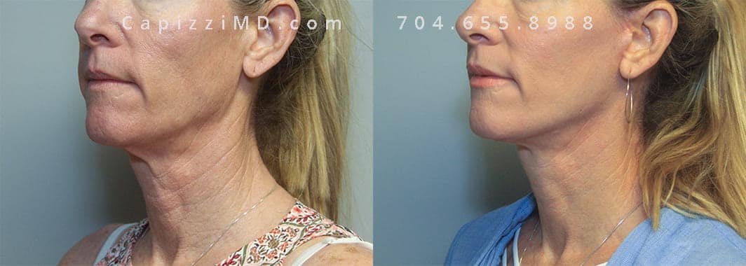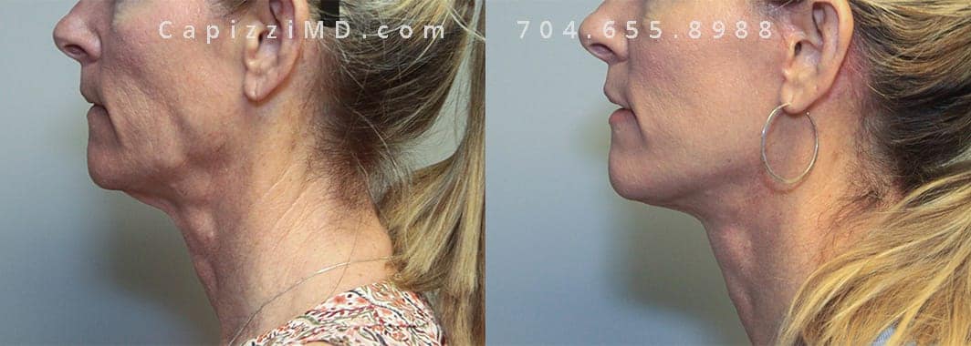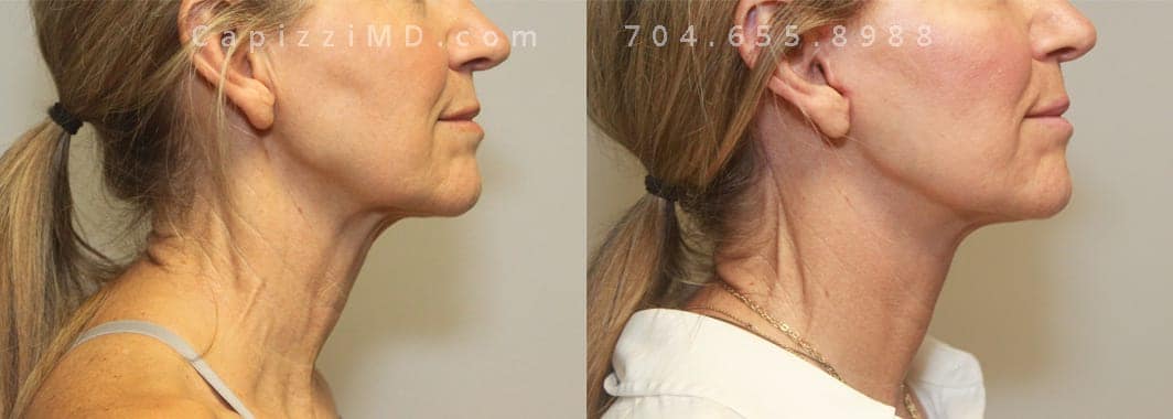This patient’s main concern was the loss of elasticity in her neck. A necklift removed excess skin and tightened up her fascial structures for a beautiful, youthful result.