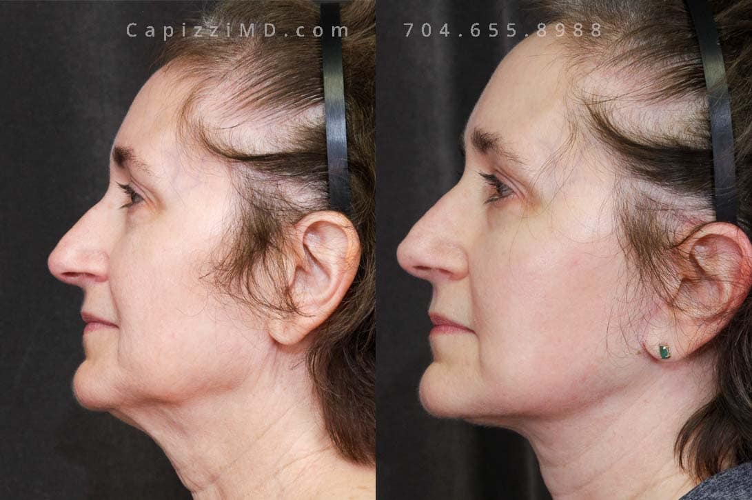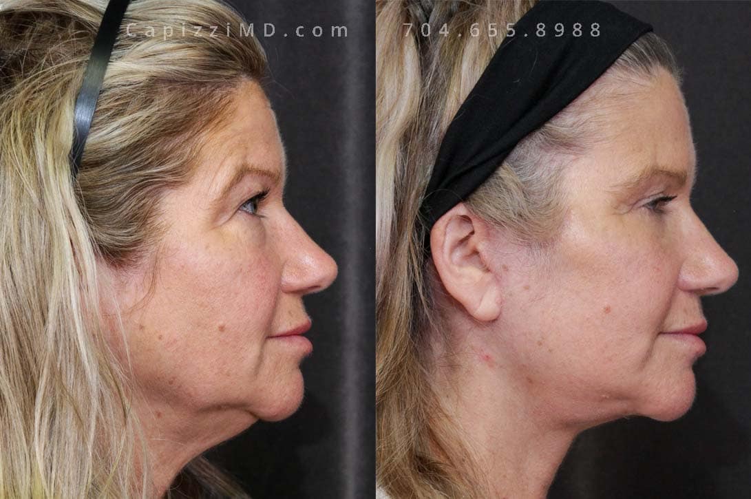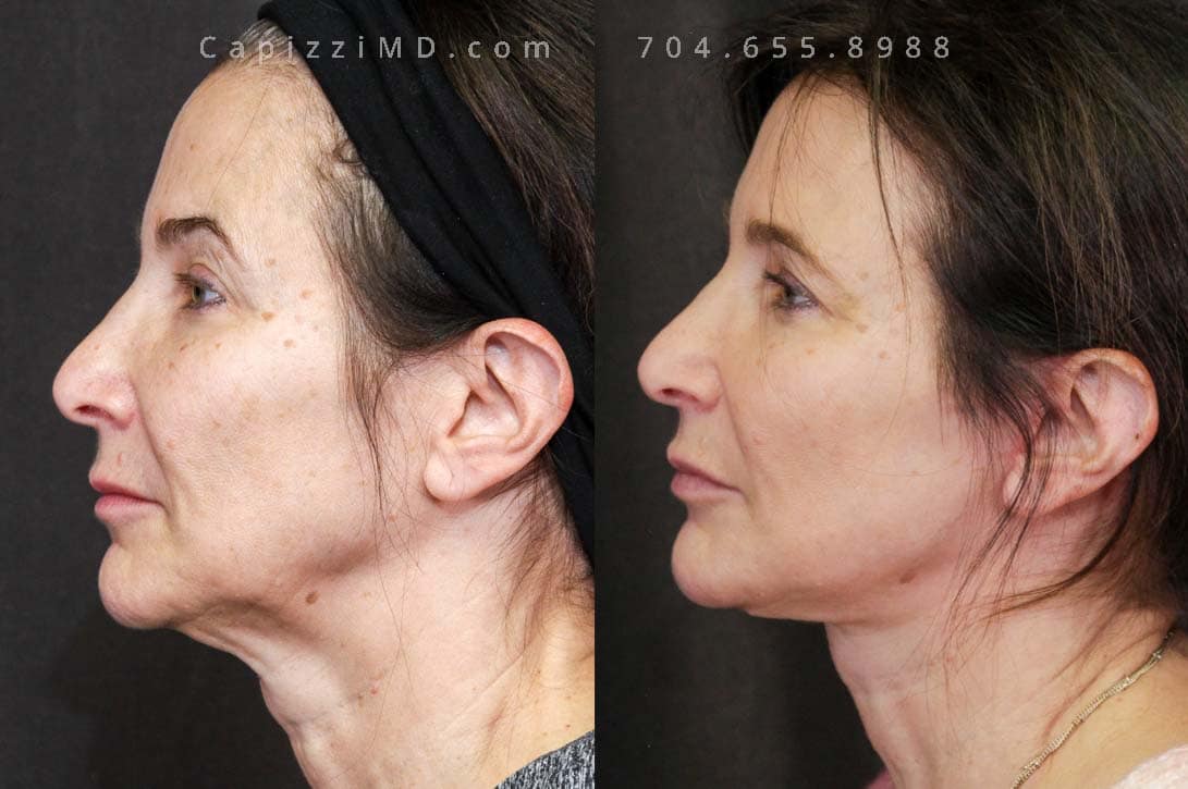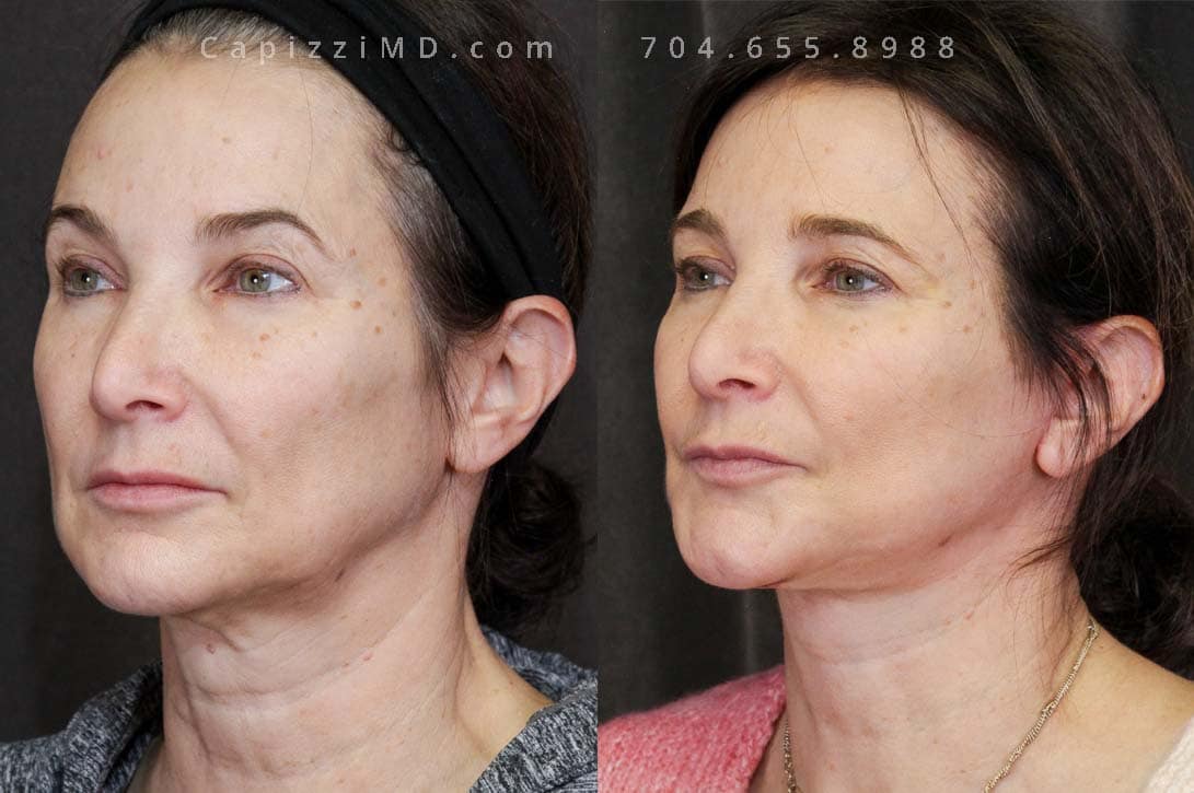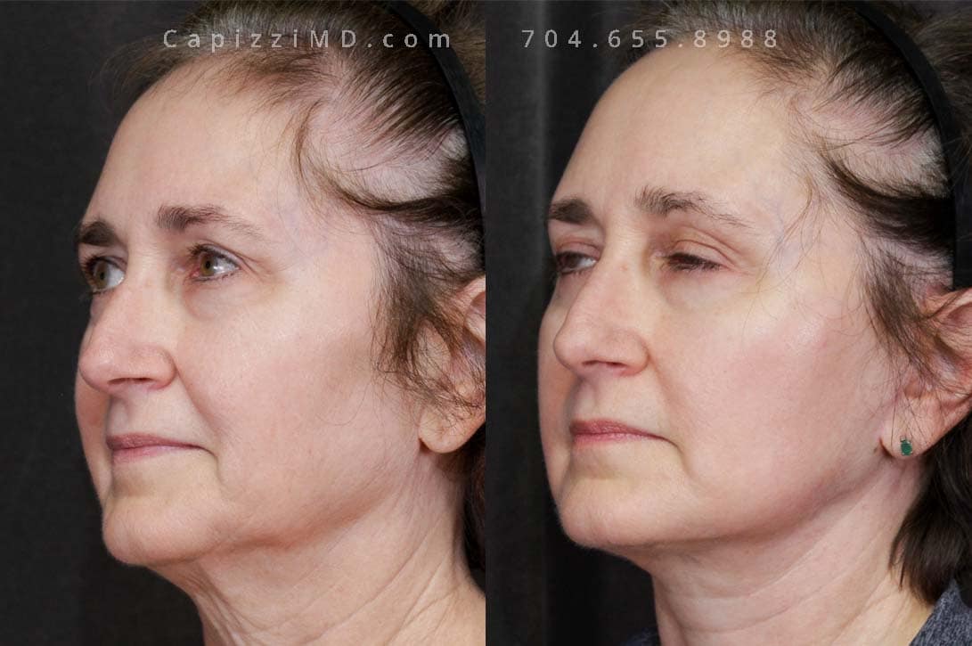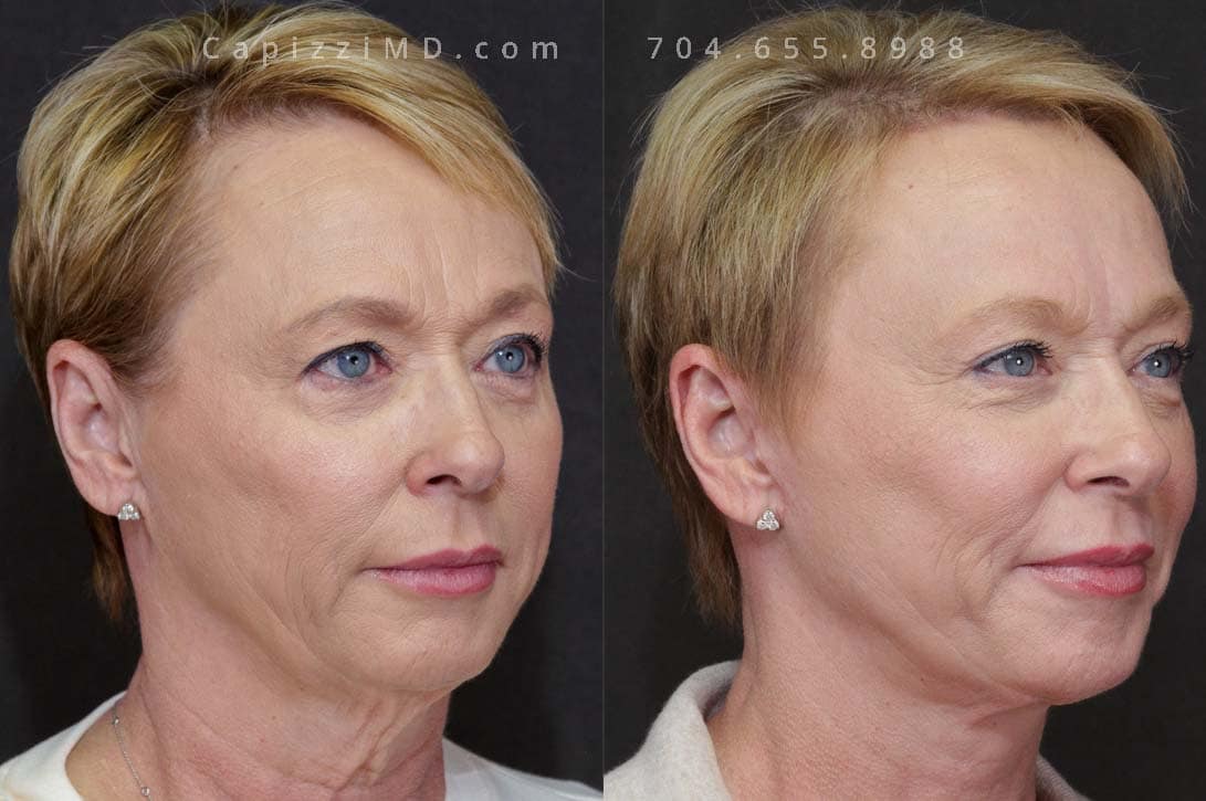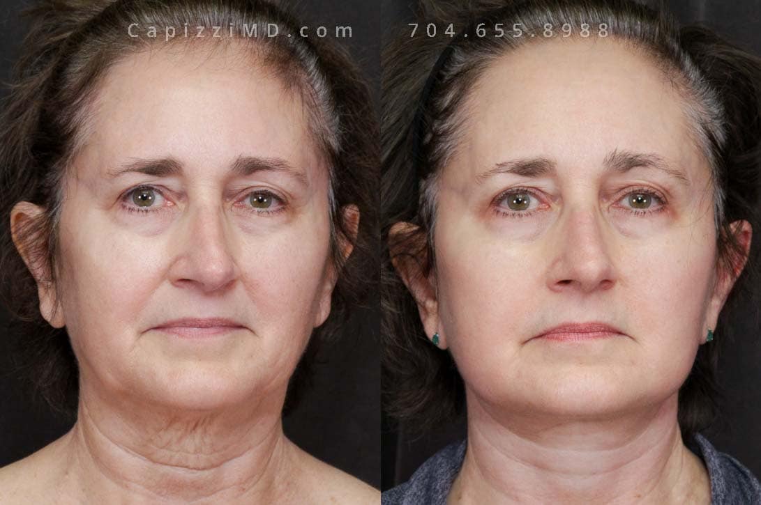 This patient sought a full face rejuvenation to resolve skin laxity and improve the contour of her face globally. This resulted in a refreshed result, with significant improvements in the jowls, neck, brow, and eyes.