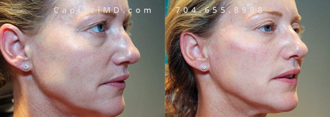 1 syringe of Voluma to this patient’s cheekbones. Notice how lifting the cheeks helped reduce under eye circles.