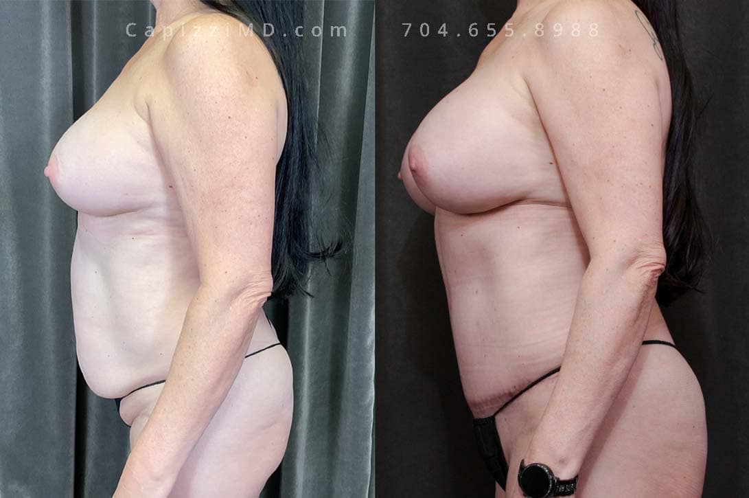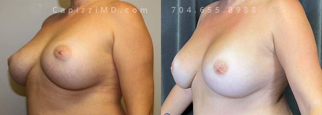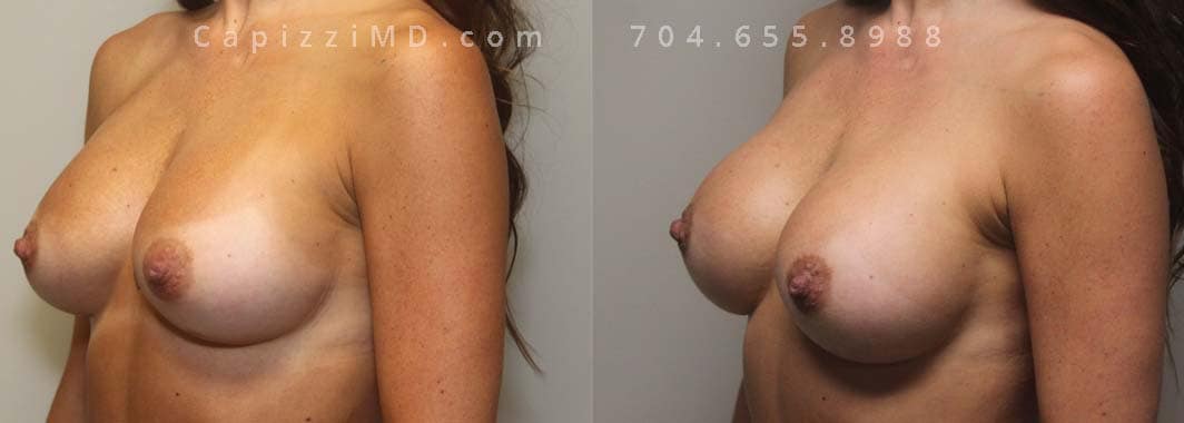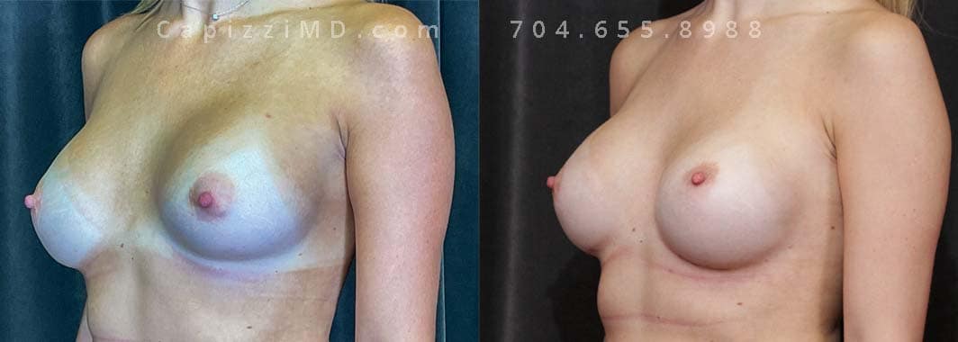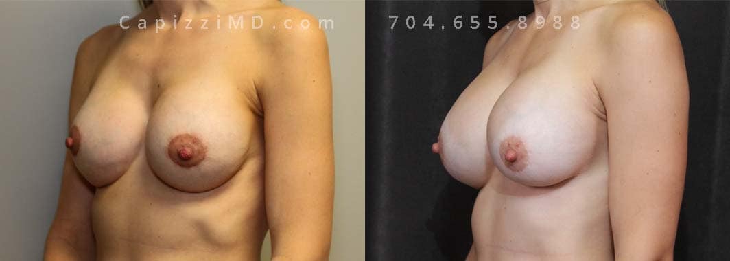 This patient desired an enhanced size and better upper pole fullness. She had her Sientra Smooth Round Moderate Profile Plus 485cc implants replaced with Sientra Textured Round High Profile 650cc implants for her results.