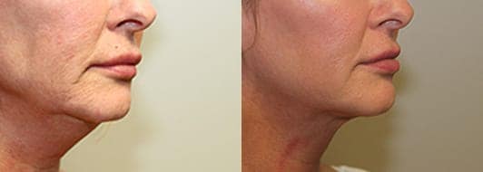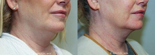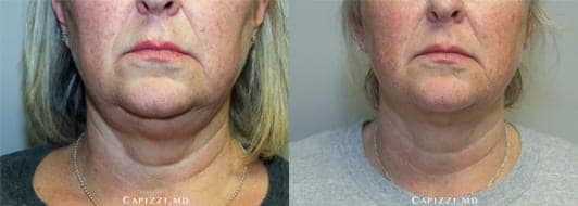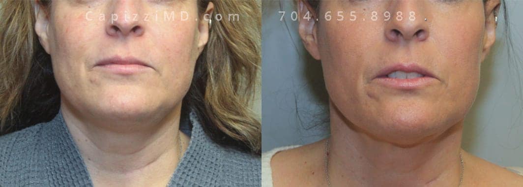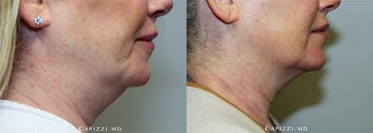 1 treatment of Kybella to neck for fat elimination. Patient is 3 months out.