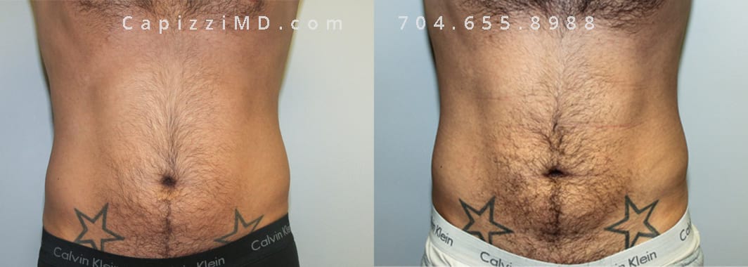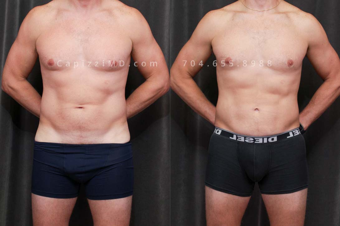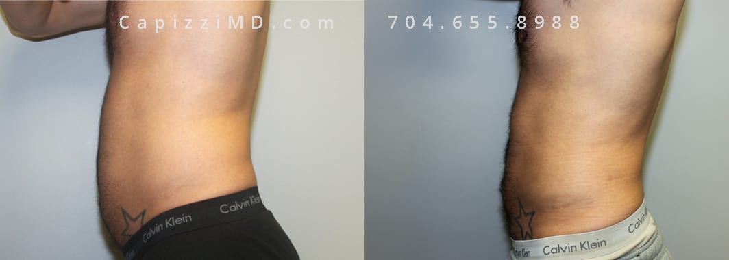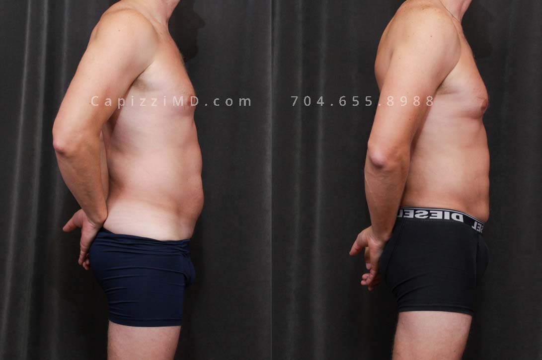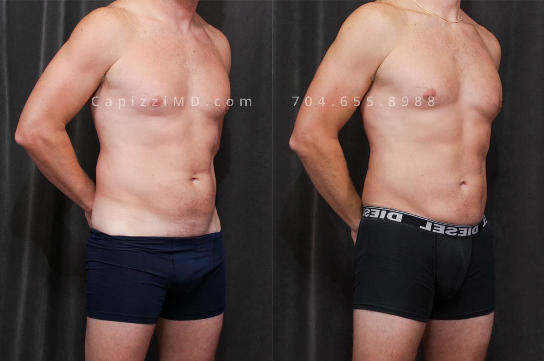 This patient had liposuction to his abdomen and posterior hips to slim and contour his abdominal muscles and give him a more masculine figure.