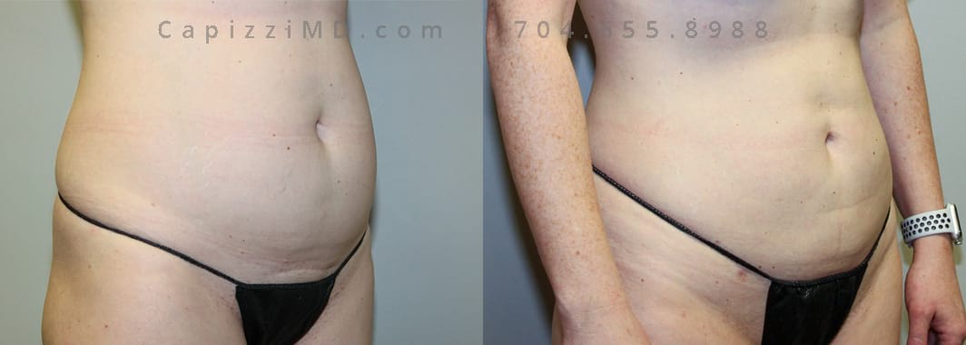 Liposuction to abdomen and posterior hips. 12 months post-procedure. 1600 cc of fat removed.