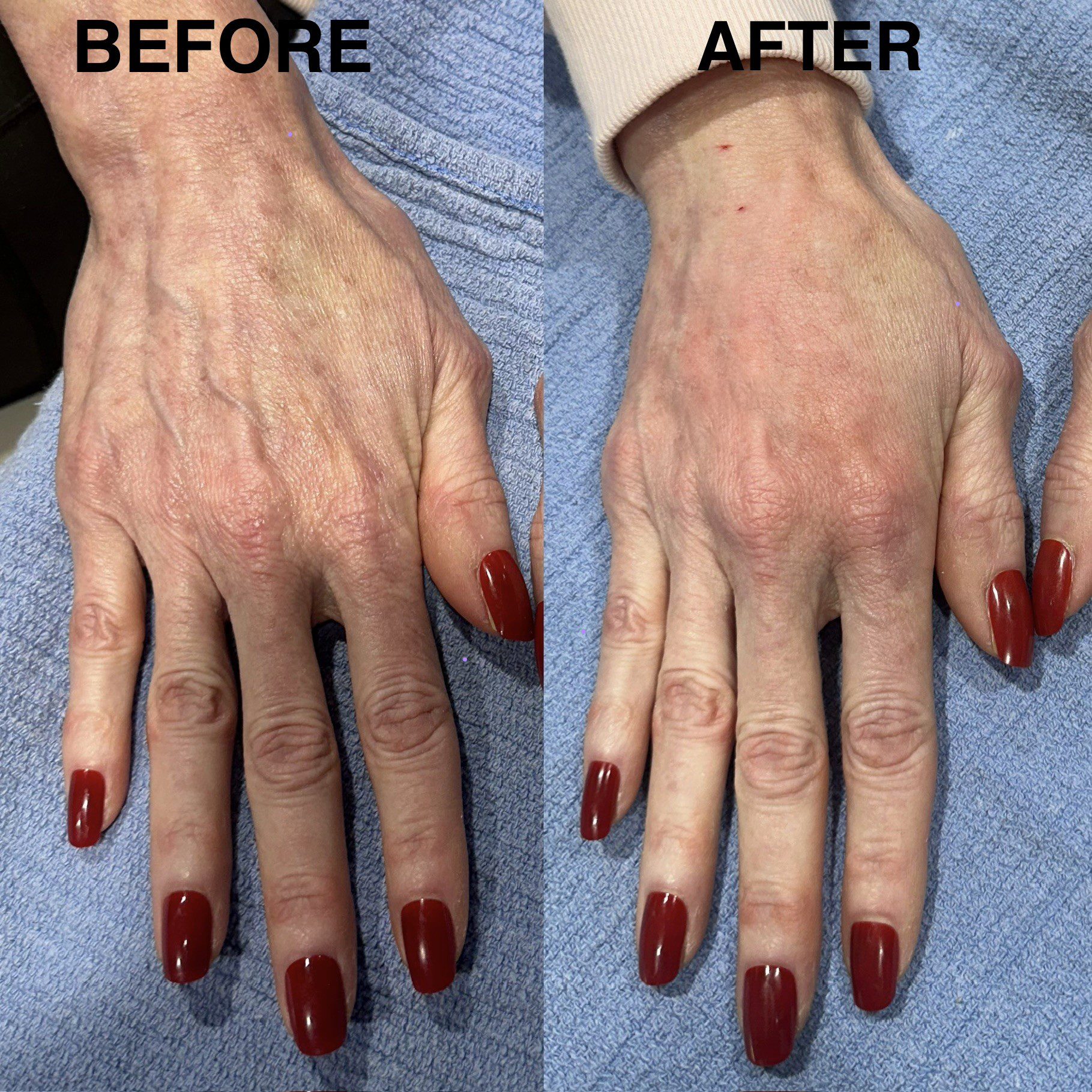 Patient felt like her hands were aging from collagen loss and volume loss. We did bellafill in hands for collagen production and volume replenishment